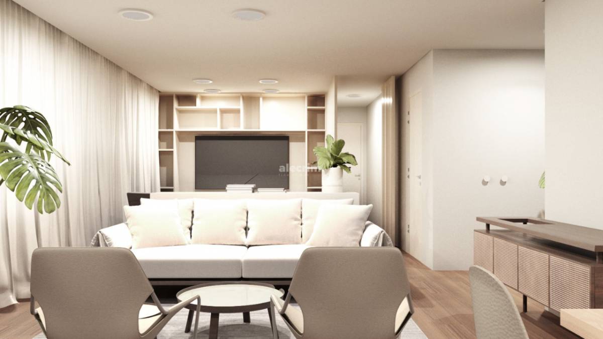 O living é composto por espaços integrados que permitem que os moradores tenham momentos com familiares ou amigos.