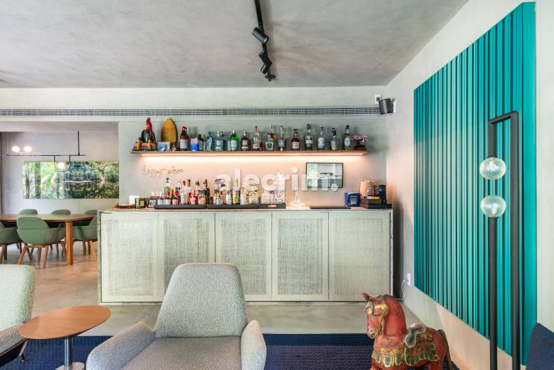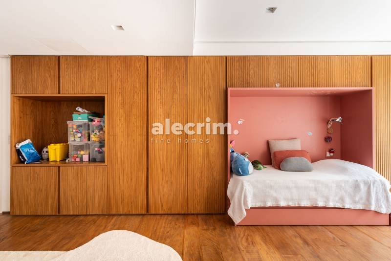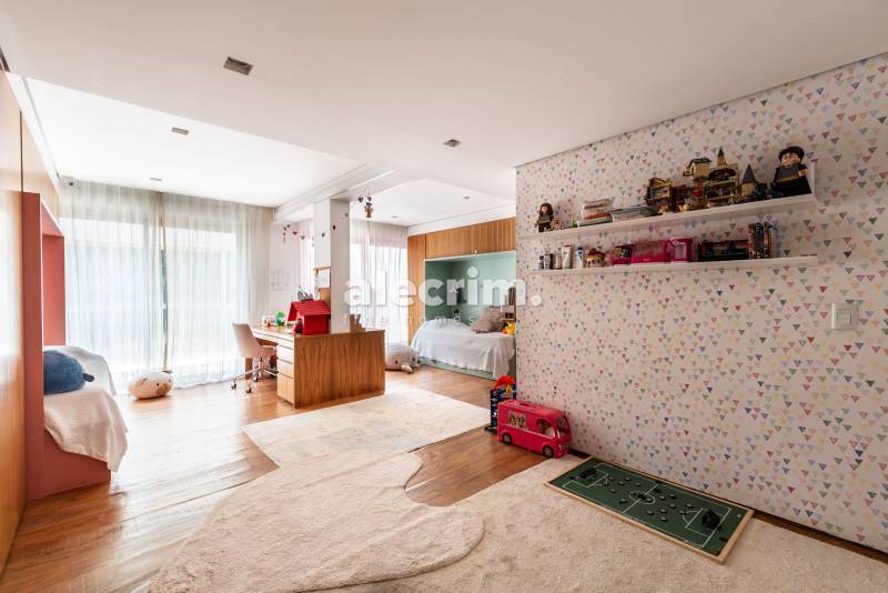 Já o pavimento térreo conta com área de serviço, dependências de funcionários, lavabo, sala de TV e depósito.