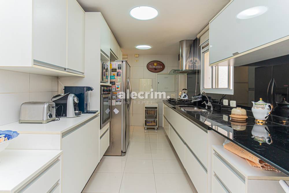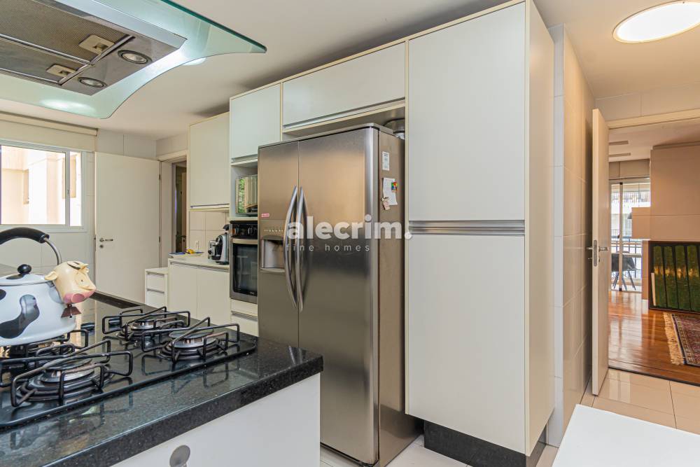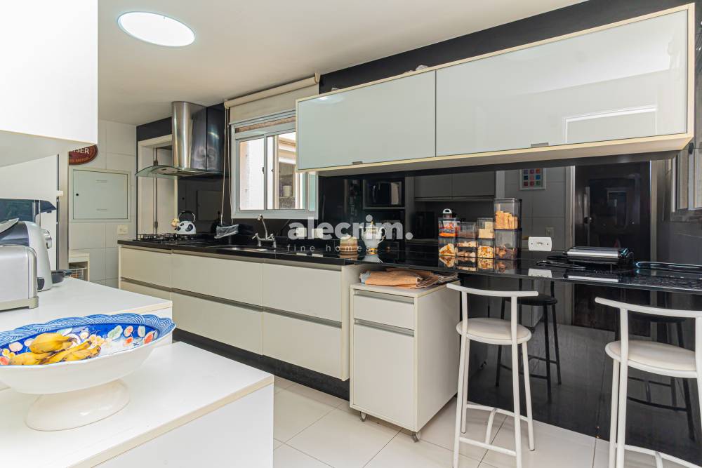 Cozinha espaçosa com copa de apoio e marcenaria sob medida.