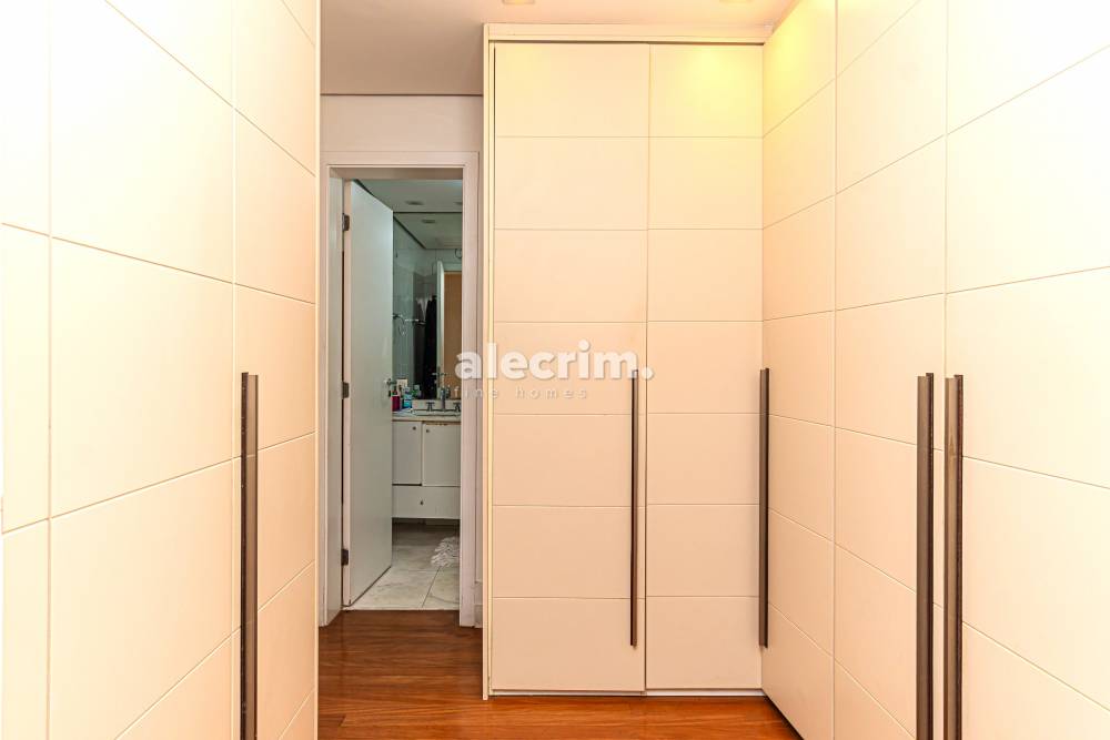 Área íntima com três suítes deliciosas - uma máster com closet , armários planejados, piso de madeira e ar-condicionado.